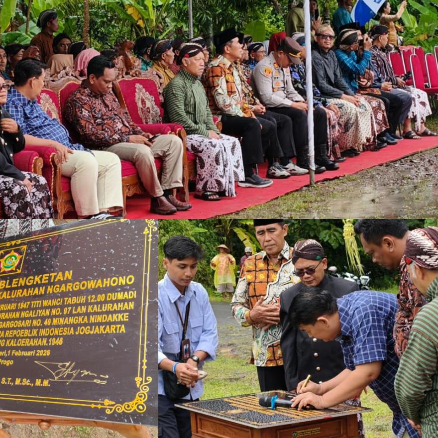 Peringatan Hari Jadi (Hadeging) Kalurahan Ngargosari ke-79 yang diselenggarakan pada 31 Januari hingga 2 Februari 2026, bukan sekadar perayaan seremonial, melainkan sebuah tonggak sejarah yang menghidupkan kembali memori kolektif warga melalui tema filosofis "Harga Karya Sarining Puja". Rangkaian kegiatan dibuka dengan nuansa spiritual yang kental melalui ziarah makam leluhur dan Malam Tirakatan lintas agama, di mana ratusan warga tetap khidmat memanjatkan doa meski di bawah guyuran hujan deras yang dimaknai sebagai berkah kesuburan. Atmosfer historis semakin terasa pada hari kedua lewat prosesi sakral "Panggih" di Padukuhan Trayu (Joyowiranan), sebuah reka ulang peristiwa "Blengketan" atau penyatuan dua wilayah lama, Ngaliyan dan Ngargowahono. Di lokasi bersejarah inilah, tujuh mata air dari kedua wilayah disatukan dalam satu wadah, menjadi simbol visual yang kuat bahwa meski berbeda asal-usul, seluruh elemen masyarakat kini telah manunggal dalam satu nadi kehidupan Kalurahan Ngargosari yang harmonis.